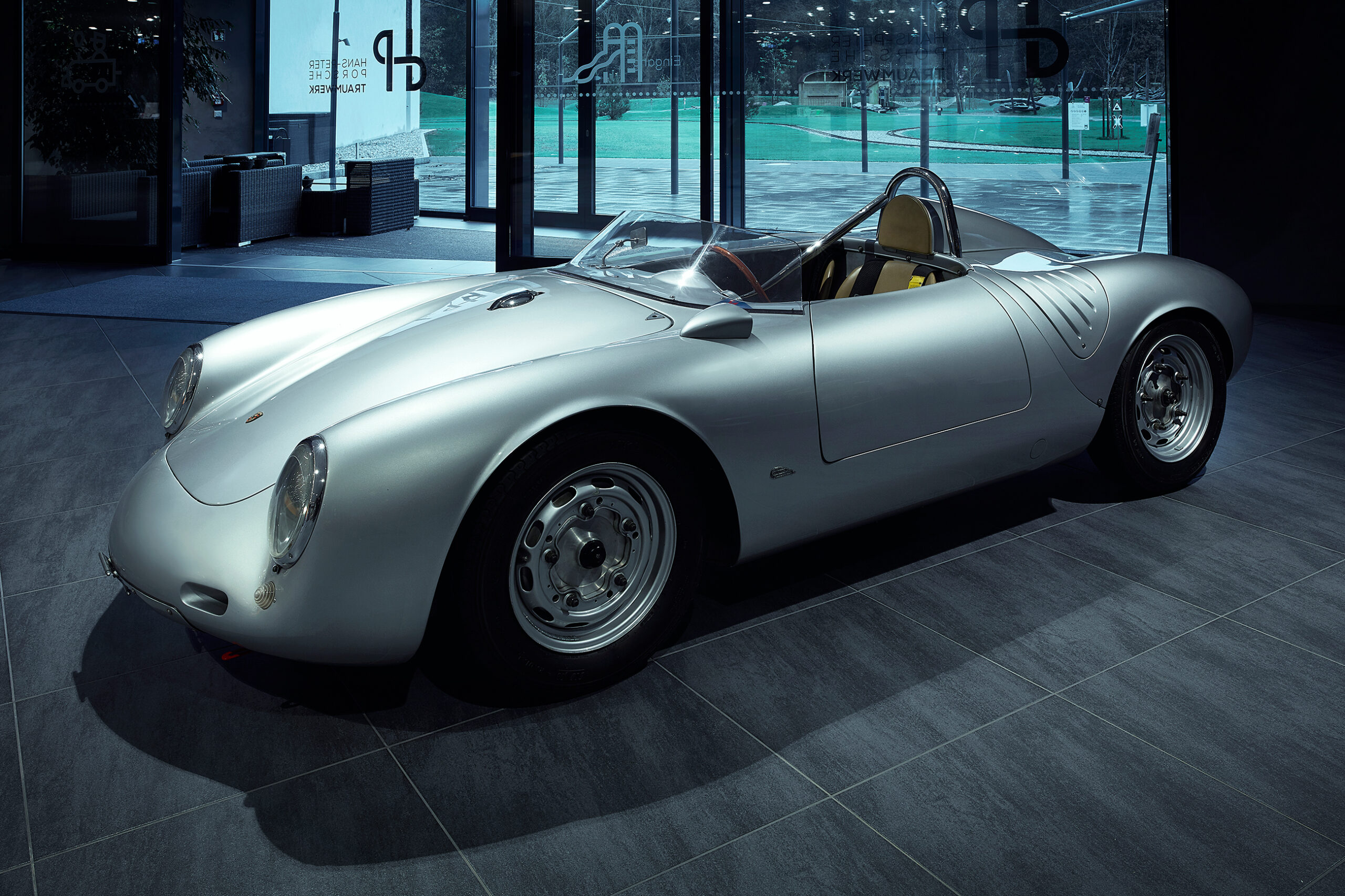 Bestaunen Sie in unserem Traumwerk dieses Meisterwerk der Ingenieurskunst: den Porsche 550. Das legendäre Fahrzeug zeichnet sich durch einen innovativen, aus Rohren gefertigten flachen Kastenrahmen aus, der lediglich 59 kg wiegt. Über diesem Rahmen thront eine elegante Karosserie aus Leichtmetall, die nur 90 kg auf die Waage bringt.