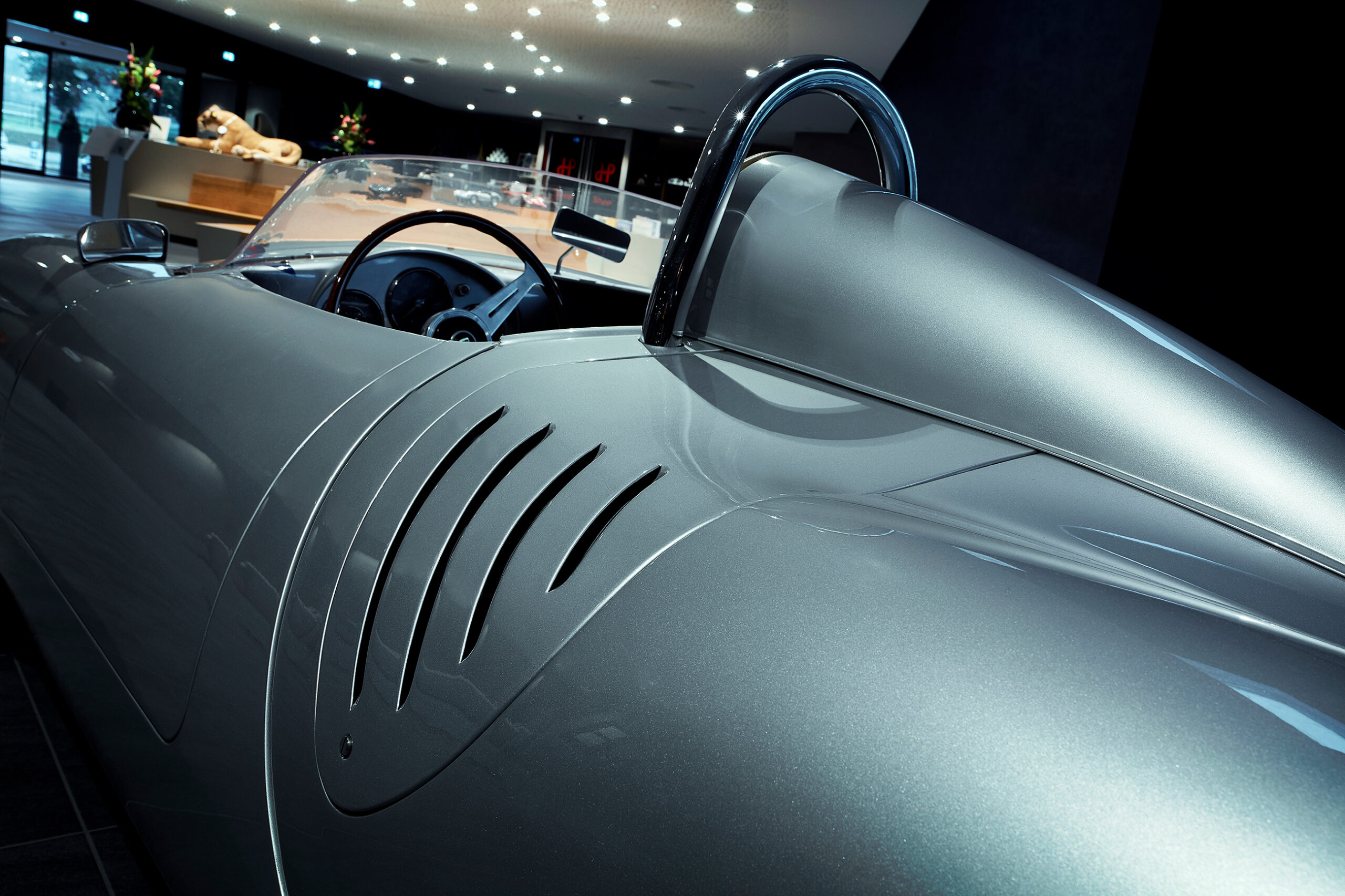 Hans-Peter Porsche sammelt nicht nur Blechspielzeug und Modelleisenbahnen sondern – natürlich – auch Porsches. Im Traumwerk finden sich immer abwechselnd Autos aus der Sammlung, die zum jeweils aktuellen Thema passen.