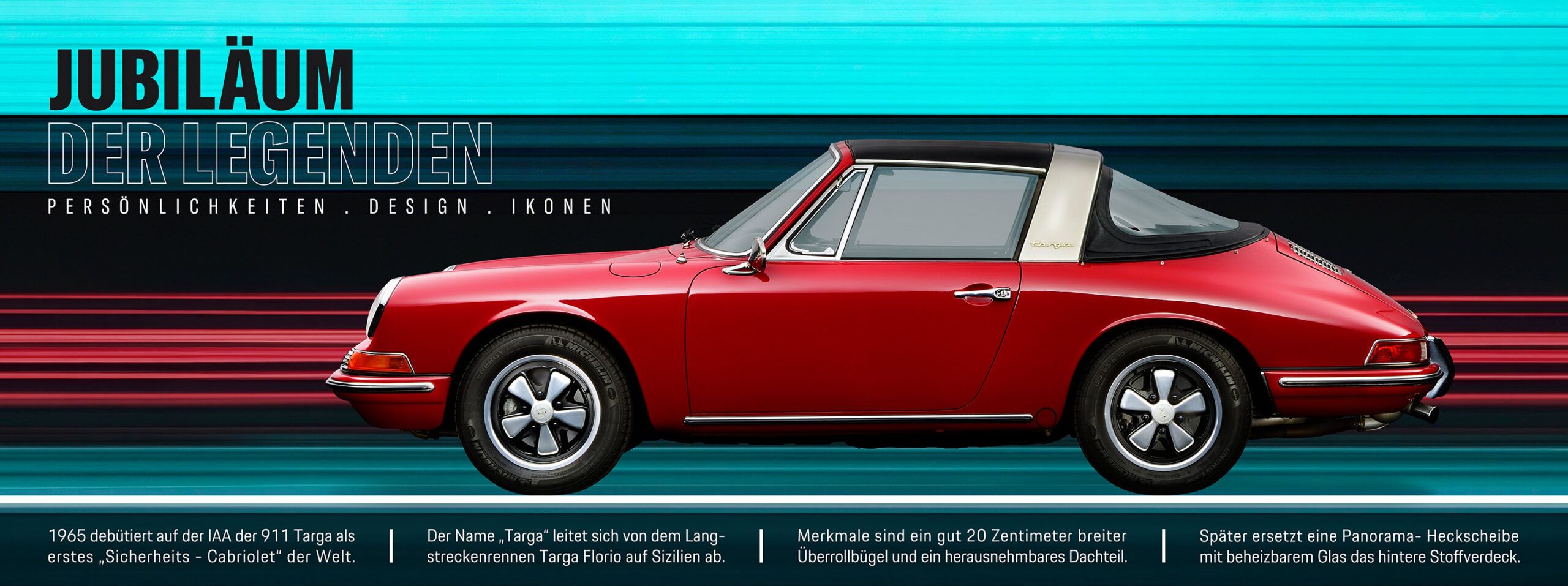 Die Sonderschau würdigt visionäre Köpfe und automobile Klassiker und bringt sie in einen emotionalen und inspirierenden Dialog. Vom Lohner Porsche über den Ur-Käfer bis hin zum 911 Targa – sie alle stehen für automobile Ikonen, die Geschichte geschrieben haben und bis heute für Pioniergeist, Leidenschaft und zeitloses Design stehen.