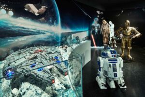 In den letzten Jahrzehnten verbindet man das Thema Weltraum besonders auch mit Filmen aus der Reihe „Star Trek“ und „Star Wars“. Selbstverständlich greift die Ausstellung auch diese Themen auf. Modelle und Figuren begeistern die Fans.