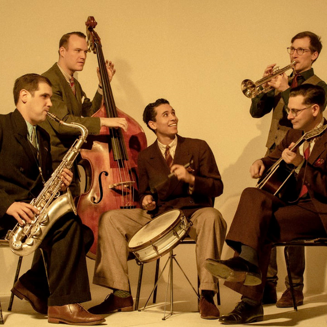 Mit Saxophon, Trompete, Klavier, Kontrabass und Schlagzeug schaffen sie einen energiegeladenen Mix, der direkt ins Tanzbein geht. Ob schnelle Rhythmen oder entspannte Melodien – ihre Musik lädt zum Tanzen und Genießen ein und lässt die goldene Ära des Swing aufleben. Beste Stimmung ist garantiert!